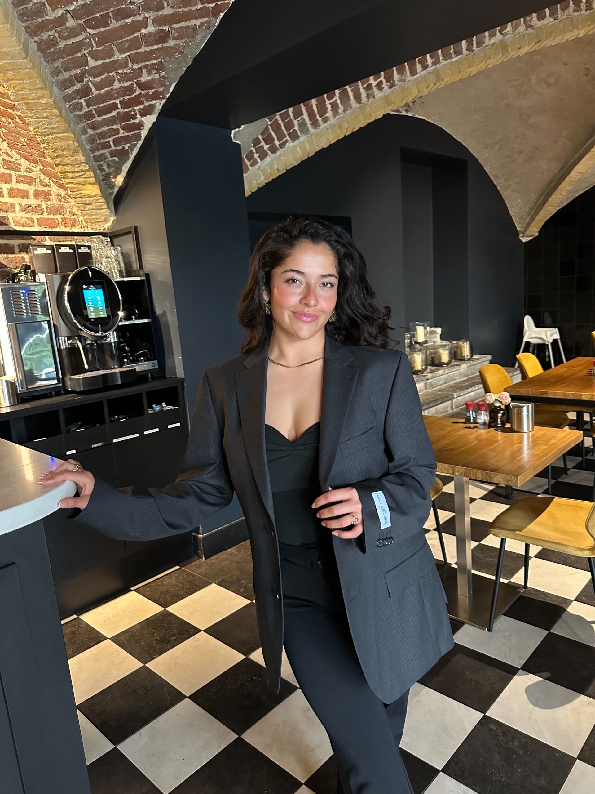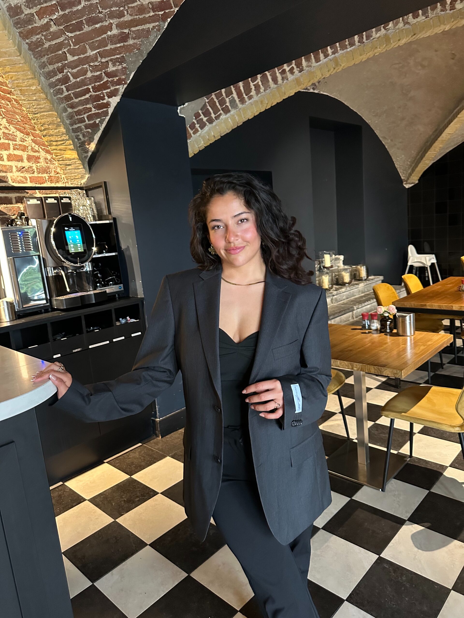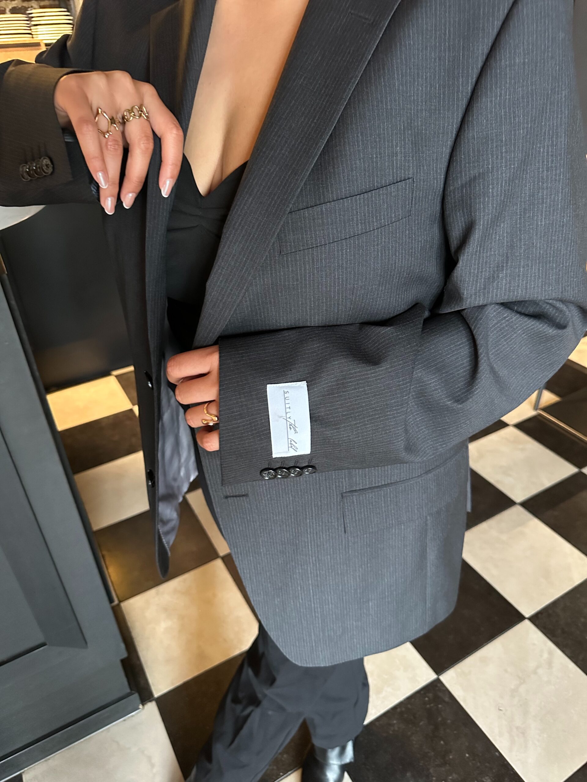 Geef je outfit een verfijnde en moderne touch met deze grijs gestreepte blazer uit Suitly The Label.