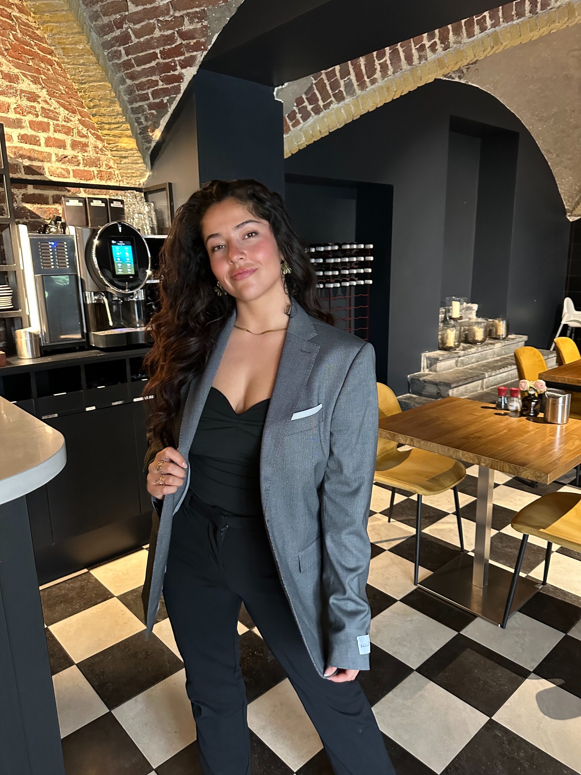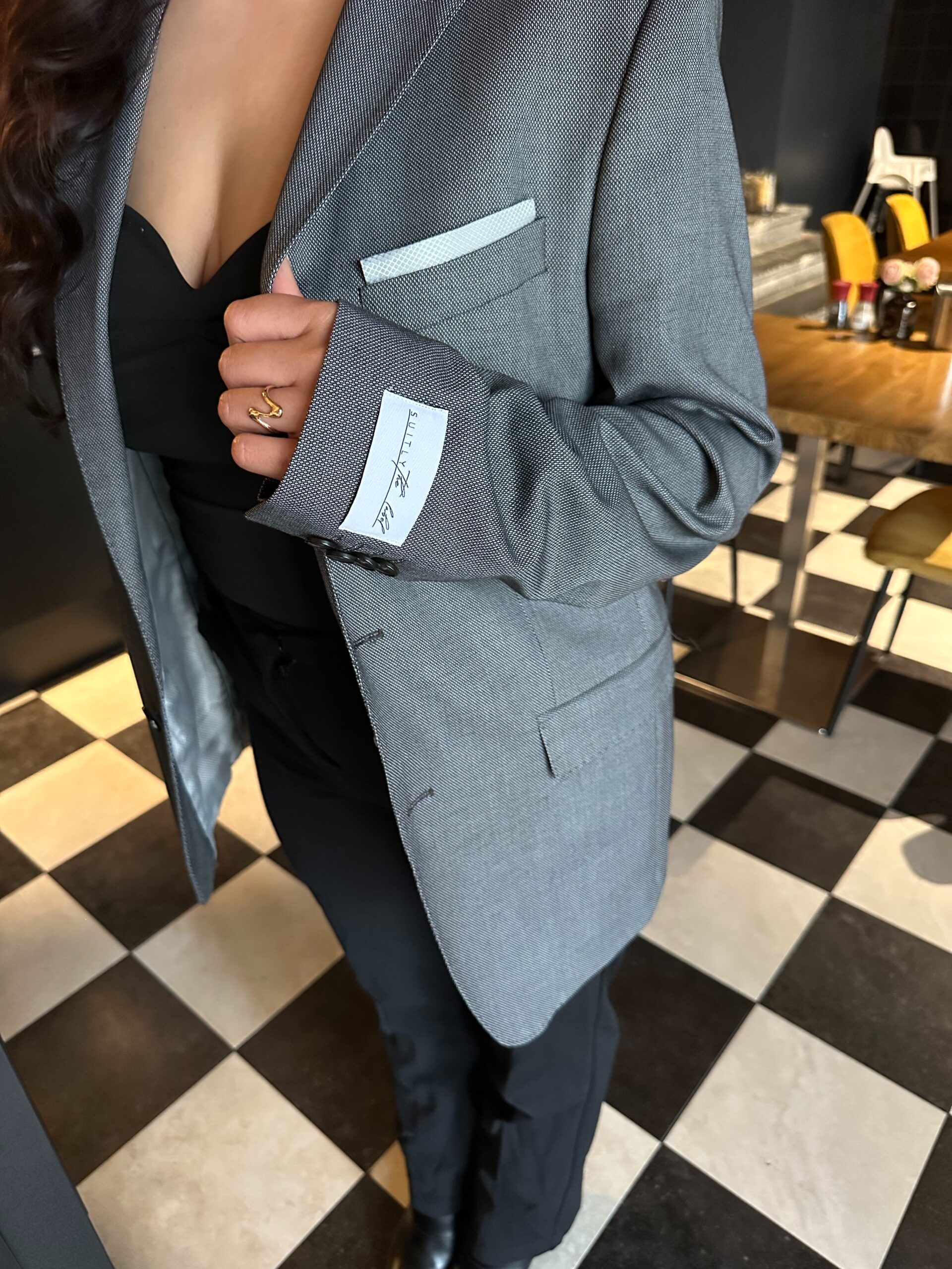 De neutrale grijze kleur zorgt voor een tijdloze en veelzijdige uitstraling die eenvoudig te combineren is met verschillende outfits. Het subtiele Suitly The Label-logo op de linkermouw geeft de blazer een verfijnd detail en een herkenbare, chique signatuur.